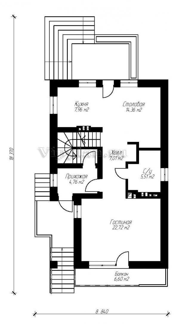 | Размеры дома: | 18.37м×8.84м |