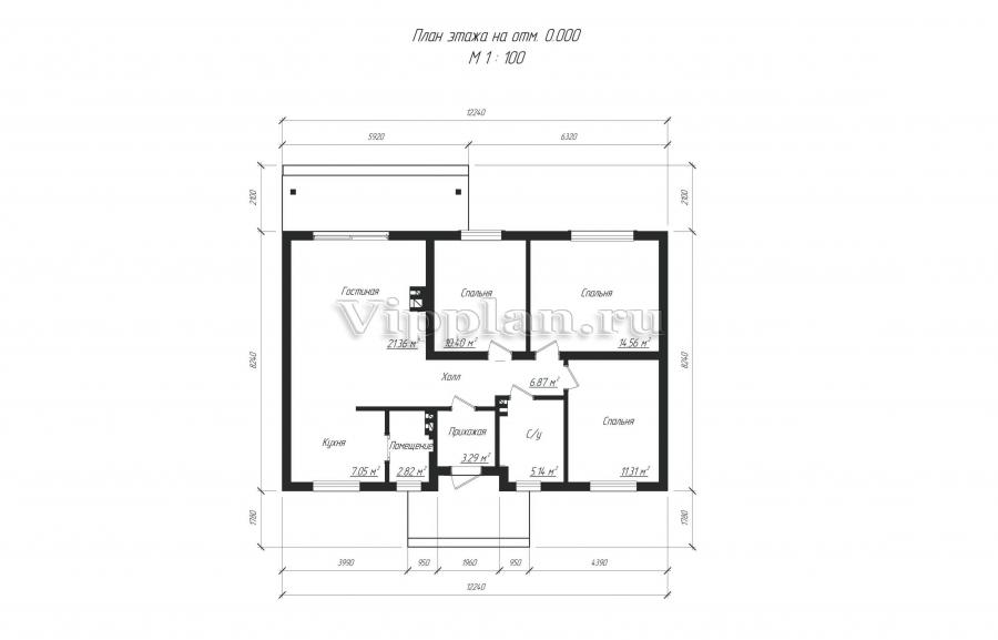 Проект индивидуального одноэтажного жилого дома с мансардой с размерами 8,24 x 12,24 м.