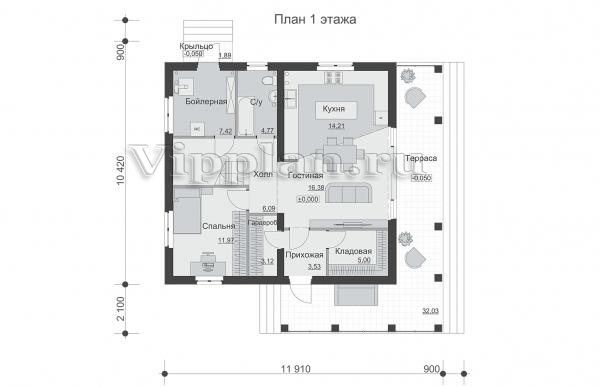 | Размеры дома: | 12.52м×11.91м |
